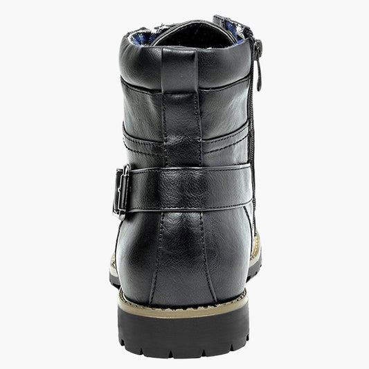 Men's Casual Motorcycle Ankle Boots – Urban Lace-Up Combat Style with Zipper and Buckle