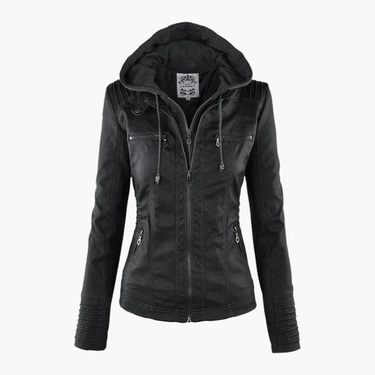 Women's Hooded Biker Jacket Urban Style with Zipper – Fashionable Transitional Outerwear
