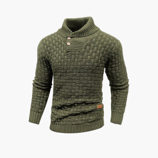 Men's Textured Knit Pullover Sweater with Stand Collar and Button Placket – Stylish Everyday and Office Wear