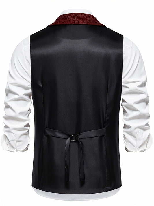 Men's Vintage Herringbone Suit Vest – Classic Formal Business Waistcoat