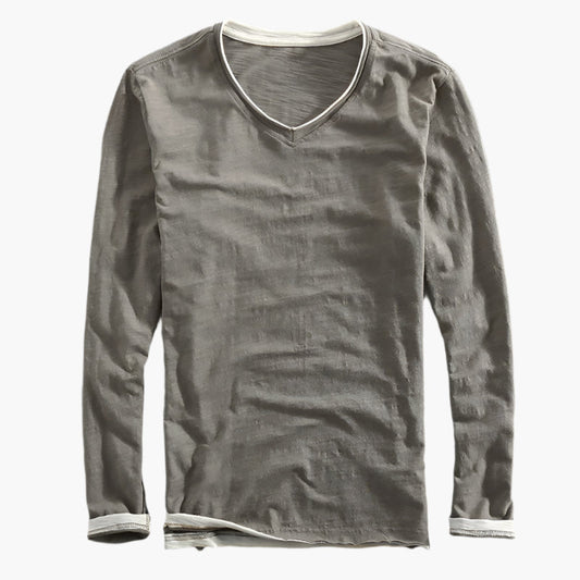 Men's Vintage Fit Long Sleeve Layered Look V-Neck Shirt Casual Basic Top