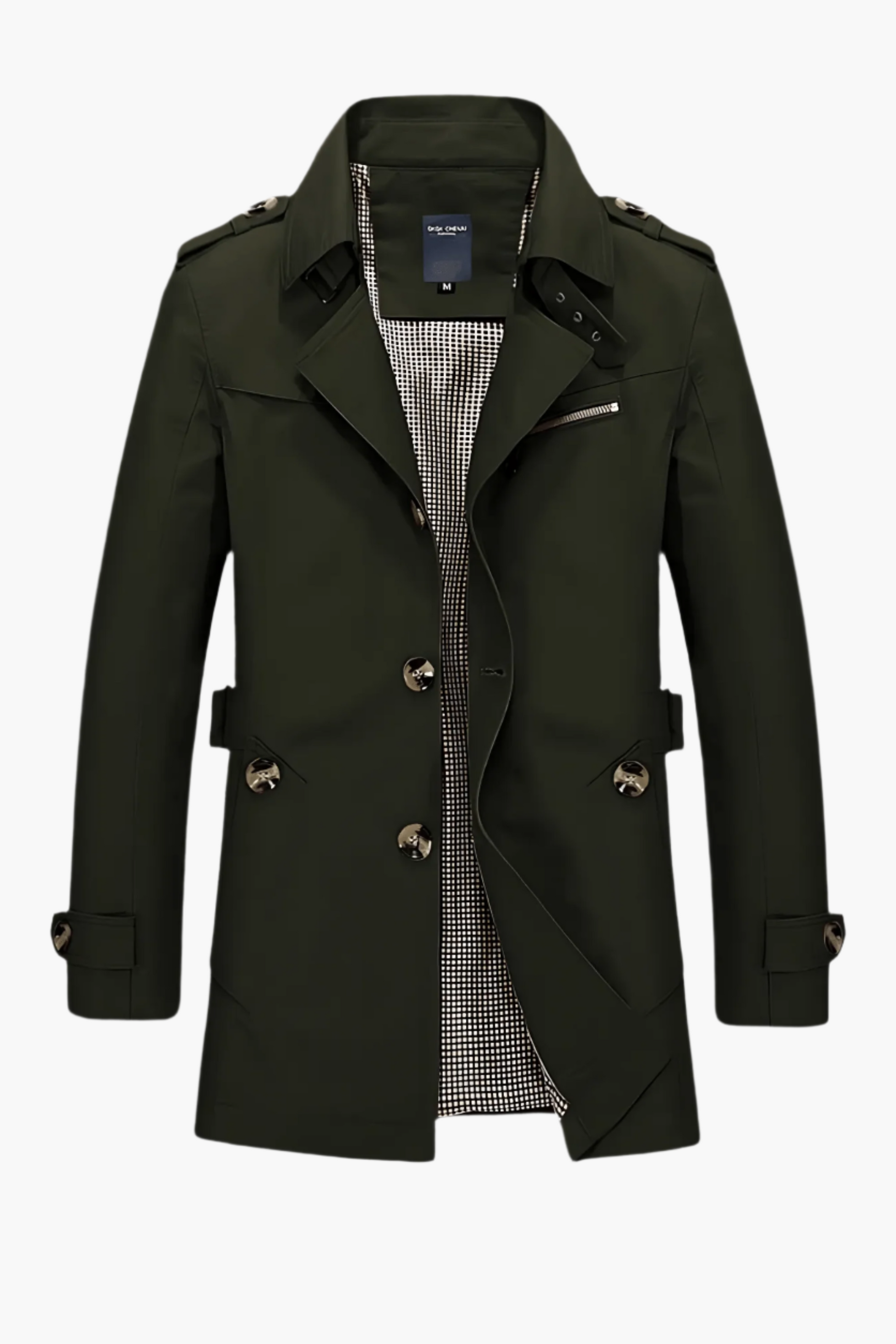 Elevate your wardrobe with this men's classic trenchcoat, designed for timeless elegance and modern functionality. The tailored silhouette, complete with a refined lapel collar and subtle shoulder epaulettes, brings a sophisticated urban vibe to any outfit. Thoughtful details like the double-breasted front, adjustable belts at the waist and cuffs, and spacious side pockets provide both style and practicality.